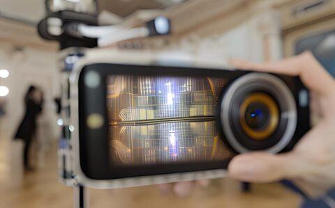 - Setting up a two-camera interview about the tech